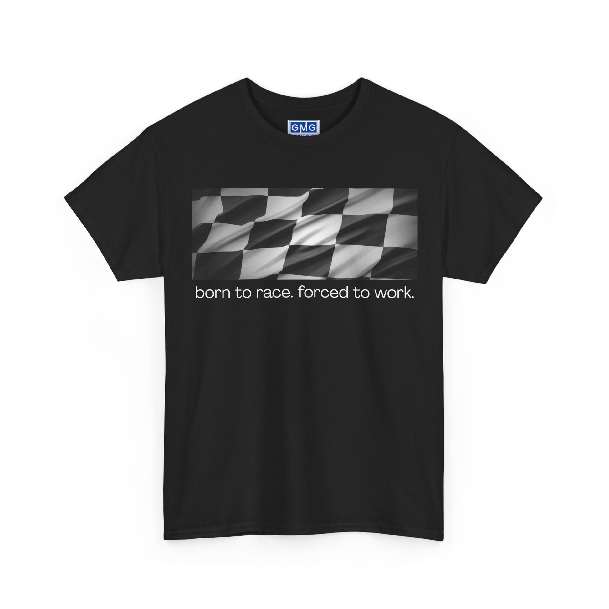 The Born To Race, Forced to Work Graphic Tee, perhaps the ultimate expression for racing enthusiasts. This tee exudes a cool and edgy vibe, perfect for those who love speed and adrenaline. Ideal for casual wear or as a statement piece for racing events and car meets. A must-have for anyone passionate about the racing lifestyle.