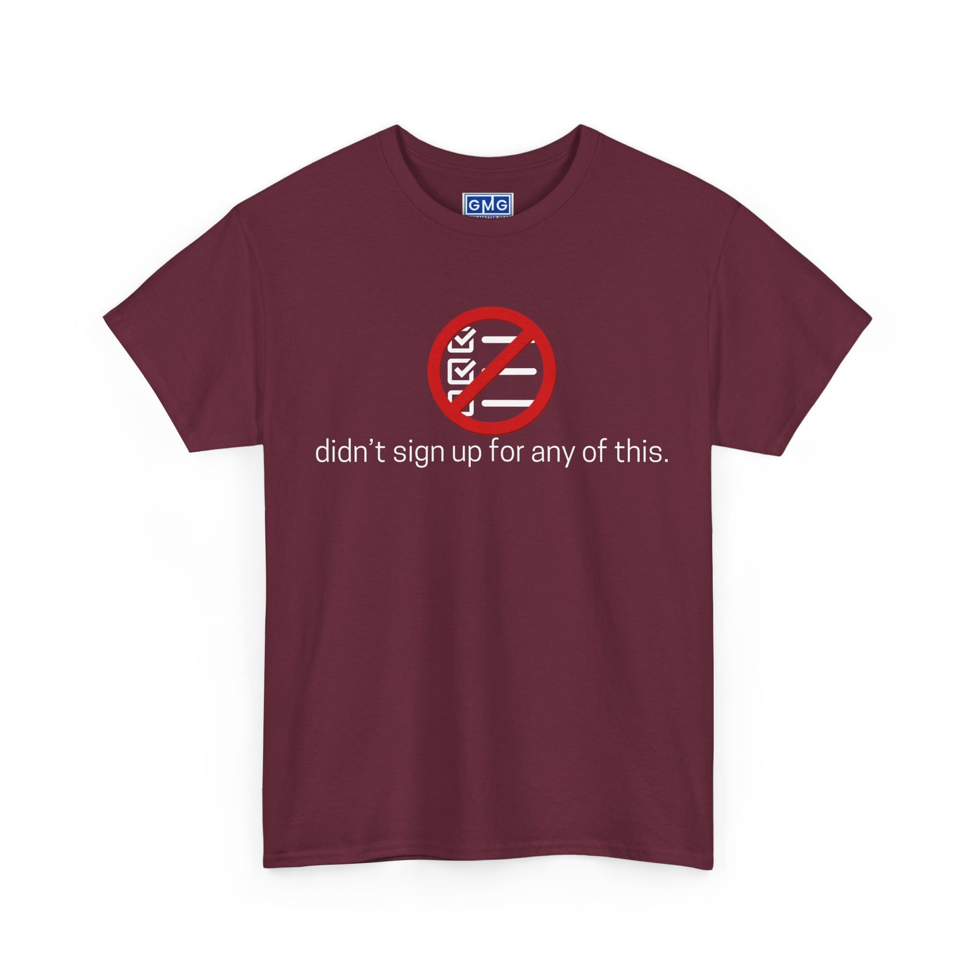 I Didn’t Sign Up For Any of This — A T-Shirt for Cynics, Skeptics, and the Chronically Unimpressed . Life’s full of surprises—most of them annoying. If you’ve ever looked around and thought, “Seriously, what is this?” then this tee was made for you.