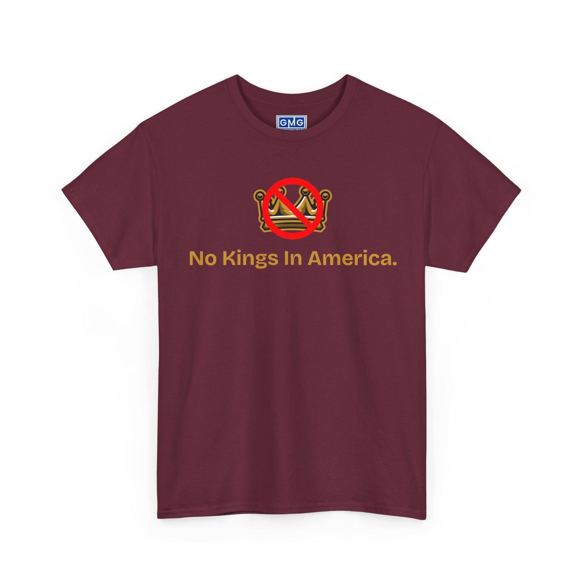 No Kings In America Graphic t-shirt, for those who take exception with some of our elected officials. This unisex heavy cotton tee offers a comfy, relaxed fit with a neat crew neckline, suitable for casual or semi-formal occasions. Made with high-quality, sustainable fabric for year-round comfort and durability. Perfect for adults looking for a statement piece.